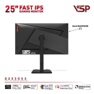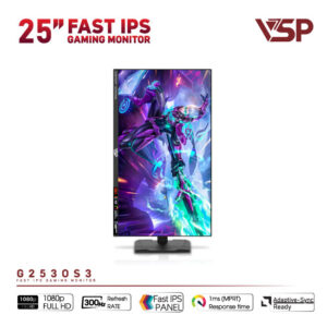 Màn hình Gaming VSP G2530S3 có kích thước 25 inch, độ phân giải Full HD và sử dụng tấm nền Fast IPS hiện đại. Thiết bị hỗ trợ tần số quét lên tới 300Hz, giúp hiển thị hình ảnh mượt mà trong các tình huống chuyển động nhanh. Khả năng đồng bộ hình ảnh và tốc độ phản hồi siêu nhanh cho phép người chơi dễ dàng nắm bắt mọi diễn biến trên màn hình trong thời gian thực.